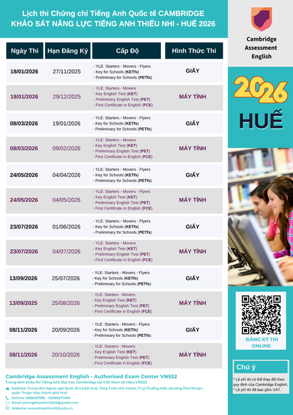 Lịch thi CAMBRIDGE tại VN552 HUẾ