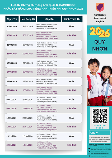 Đăng ký thi chứng chỉ Cambridge năm 2026